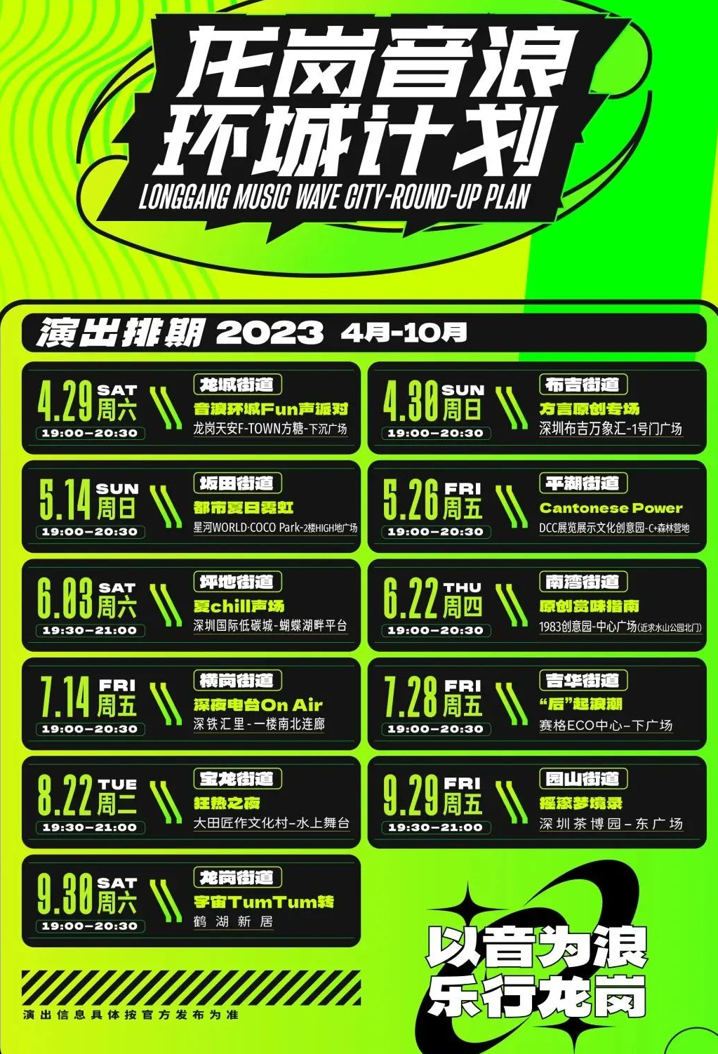 演出地點:創城·CCONE 一樓外廣場(龍崗區坪地街道龍崗大道2098號)